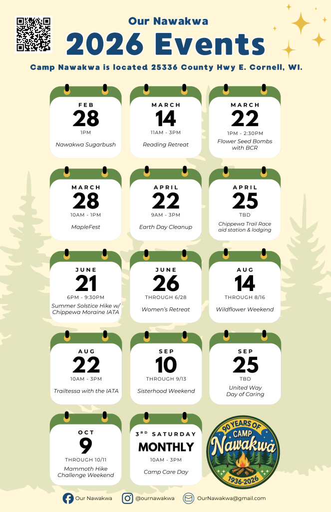 Our Nawakwa offers many opportunities to come to camp and connect with nature and each other! Check out our EVENTS PAGE for more information!