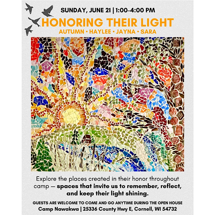 Join us at Camp Nawakwa for a special open house as we remember Autumn, Haylee, Jayna, and Sara, and reflect on the many lives forever changed on November 3, 2018.