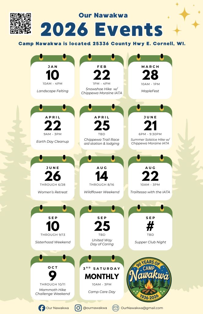 The Ice Age Trail Alliance is delighted to partner with Our Nawakwa, Inc. (ON), a volunteer-run nonprofit dedicated to preserving the campโs youth-serving legacy. In January 2024, Our Nawakwa became the proud owners of Camp Nawakwa, ensuring the magic continues and children can grow healthier through nature for generations to come.