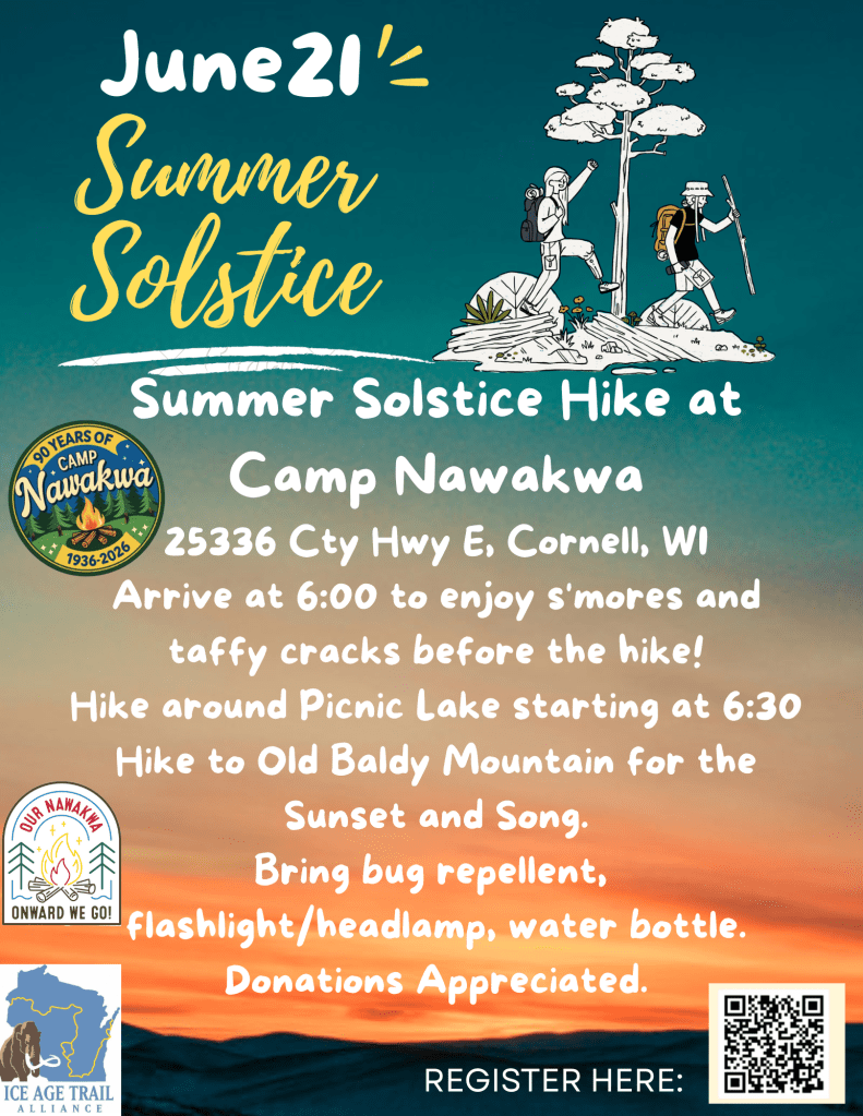 The Ice Age Trail is a National Scenic Trail that follows the edge of where ancient glaciers once carved through Wisconsinโs landscape. A section of that trail runs through Our Nawakwa camp in Cornell, WI.